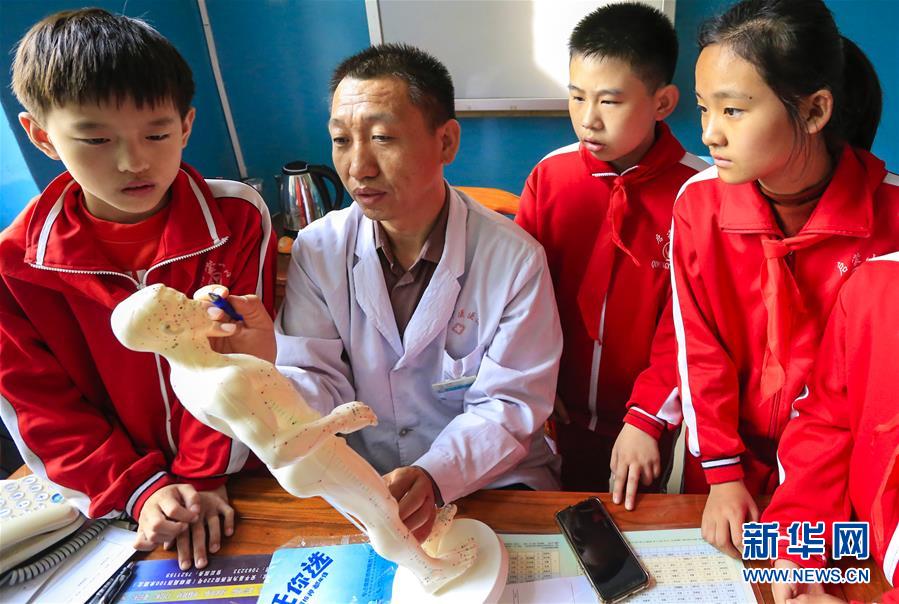 10月22日,安平縣中醫(yī)院醫(yī)生在教小學(xué)生認(rèn)識人體穴位。 當(dāng)日是世界傳統(tǒng)醫(yī)藥日,河北省安平縣啟蒙小學(xué)組織學(xué)生走進(jìn)安平縣中醫(yī)院,通過參觀中藥房、認(rèn)識常見中藥、感受中藥加工等方式,向小學(xué)生普及中醫(yī)藥知識,弘揚傳統(tǒng)中醫(yī)藥文化。 新華社記者李曉果攝