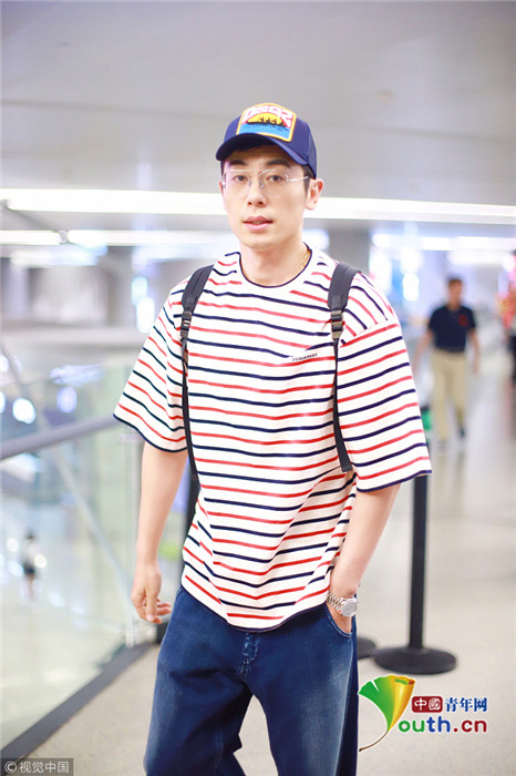 2018年10月22日,上海,朱亞文現(xiàn)身機(jī)場。他頭戴棒球帽,身穿條紋短袖搭配休閑哈倫褲顯得年輕又時尚,立減十歲大叔變潮男,單手插袋抿嘴略顯痞氣。