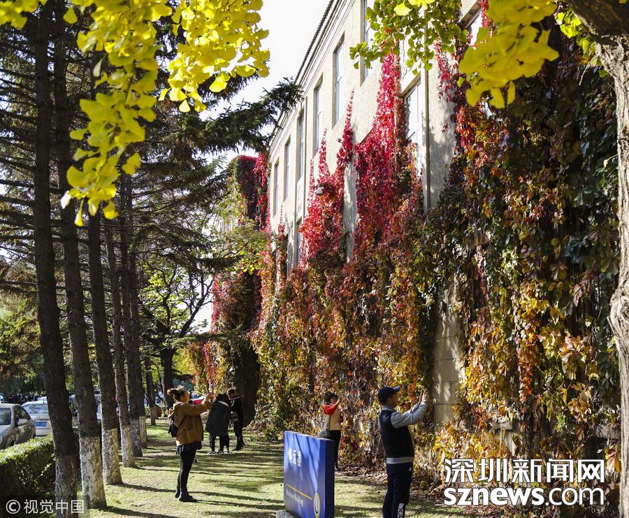 最美校園 !大學(xué)內(nèi)建筑被爬山虎包圍 滿墻火紅美如畫