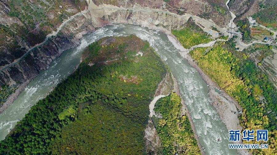 這是10月21日在西藏米林縣派鎮(zhèn)達(dá)林村拍攝的雅魯藏布江(無(wú)人機(jī)拍攝)。