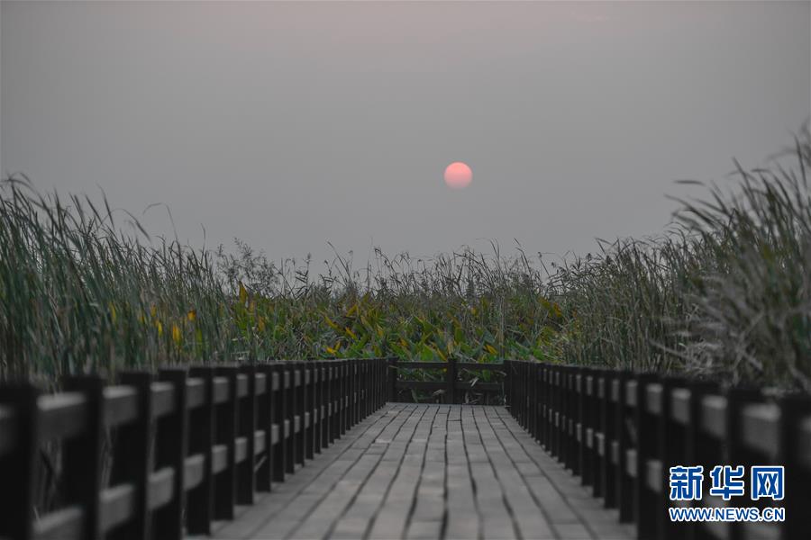 杭州灣國家濕地公園一景(10月24日攝)。 時值深秋,位于浙江寧波的杭州灣國家濕地公園在落日余暉下呈現(xiàn)出一幅美麗的畫卷。 新華社記者 黃宗治 攝