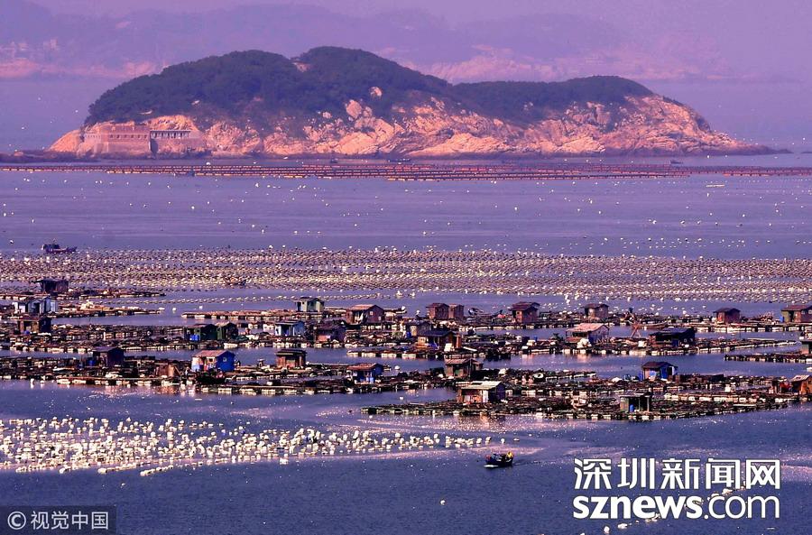 深圳新聞網(wǎng)訊 2018年10月26日,在福建連江海域上,“海上田園”網(wǎng)箱羅列,漁排上搭建的木屋錯落成“戶”,蔚為壯觀,成為一道獨特的風(fēng)景線。福建省連江縣是中國鮑魚養(yǎng)殖第一大縣。