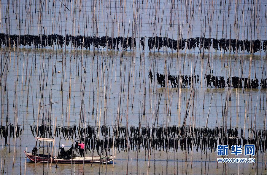10月24日,福建莆田蔣山村村民在收獲紫菜。 新華社記者姜克紅 攝