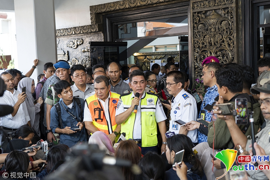 印尼哈達國際機場,機場管理局負(fù)責(zé)人Bagus Sunjoyo就獅航JT610墜機事件召開記者會。