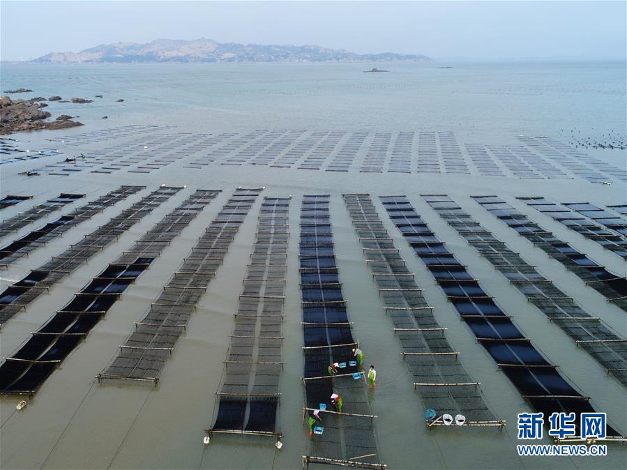 10月24日,福建莆田蔣山村村民在收獲紫菜?!⌒氯A社記者姜克紅 攝