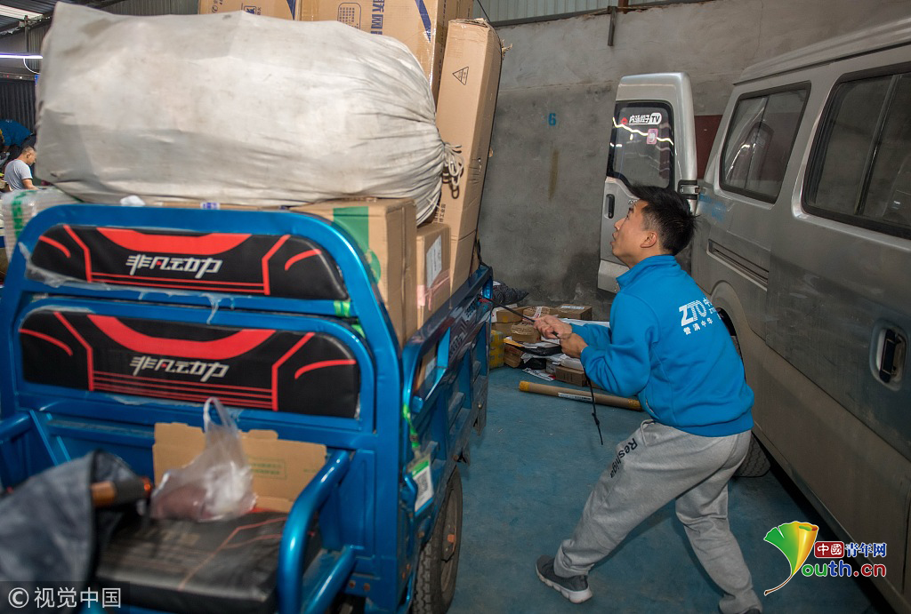 云南省昆明市,攝影師實(shí)拍90后快遞員熊忠桃的一天工作。作為一名快遞員,他25歲就買了房。圖片作者:銳圖