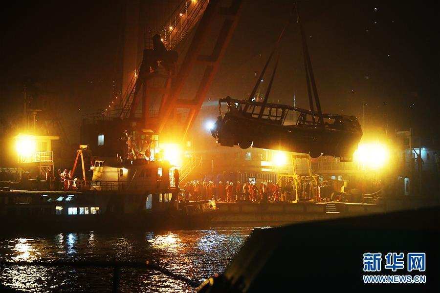 2018年10月31日消息,重慶。10月31日23時28分,重慶萬州長江二橋墜江公交車被打撈出水。