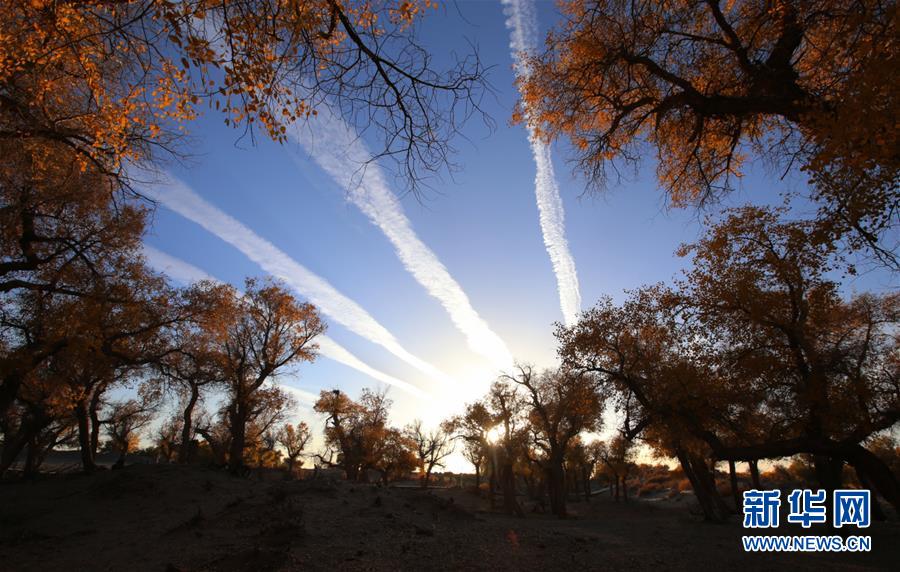 這是在內(nèi)蒙古自治區(qū)額濟(jì)納旗拍攝的胡楊林(10月10日攝)。 金秋時(shí)節(jié),內(nèi)蒙古自治區(qū)額濟(jì)納旗胡楊林如同披上金裝,成為大漠中的一抹亮色,吸引眾多中外游客前來觀賞游玩。 新華社記者安希雅攝