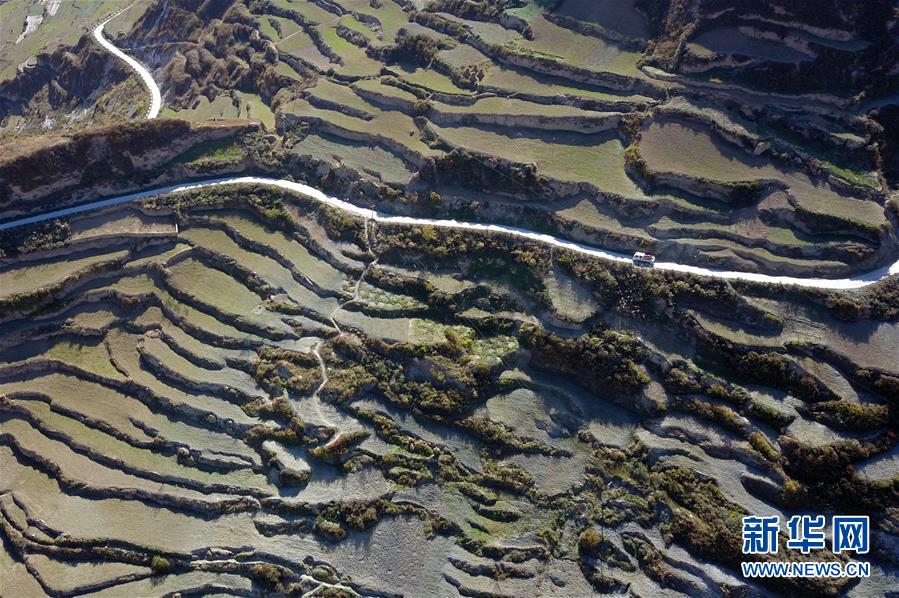 這是在隴南市武都區(qū)拍攝的“新坪埡”一角(10月31日無(wú)人機(jī)拍攝)。新華社記者 范培珅攝