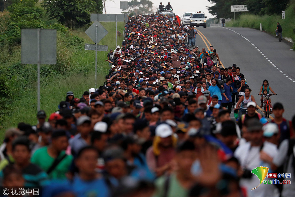 當(dāng)?shù)貢r(shí)間2018年11月2日,墨西哥與危地馬拉邊界,中美洲移民繼續(xù)向美國(guó)挺進(jìn)。圖片作者:UESLEI MARCELINO