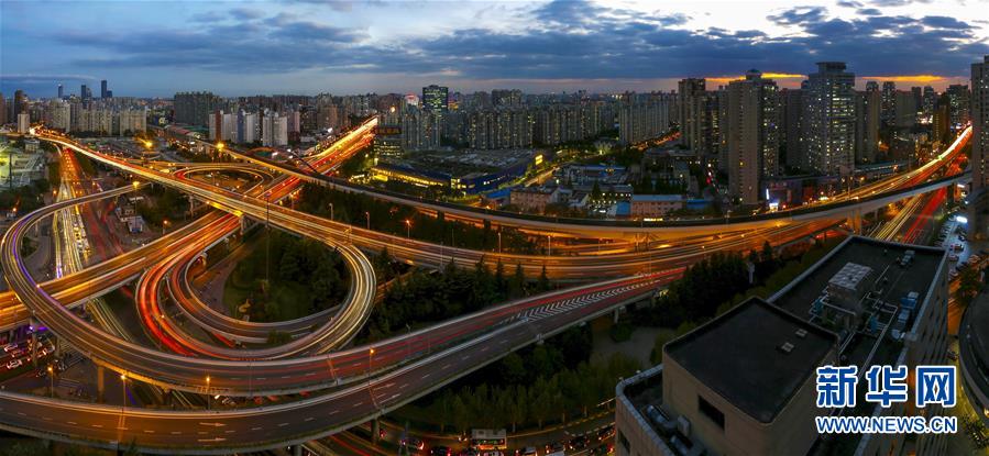 11月1日拍攝的上海夜景(全景拼接照片)。 首屆中國國際進(jìn)口博覽會(huì)即將在上海開幕。美麗的上海張開懷抱,迎接八方來客。 新華社記者 殷剛 攝