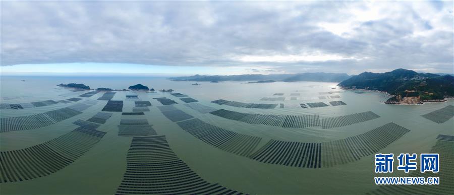 這是11月4日無人機拍攝的霞浦縣長春鎮(zhèn)的紫菜種植區(qū)(拼接照片)。 近日,福建省霞浦縣沿海6萬畝紫菜迎來收獲季節(jié),漁民們出海收獲紫菜,海上田園一派繁忙豐收景象。 新華社記者 姜克紅 攝