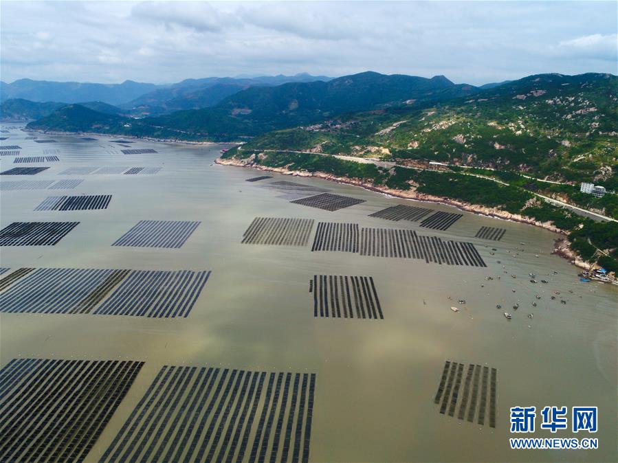 福建莆田蔣山村的千畝紫菜種植基地(10月24日無人機拍攝)?! ⌒氯A社記者姜克紅 攝