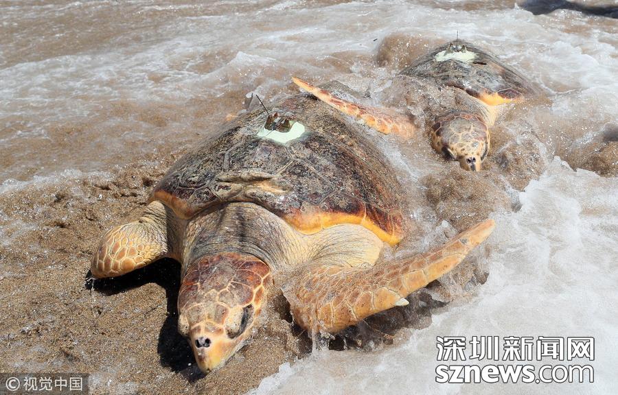 韓國(guó)水產(chǎn)部門(mén)舉辦海龜放生儀式 海龜背“天線”重歸大海