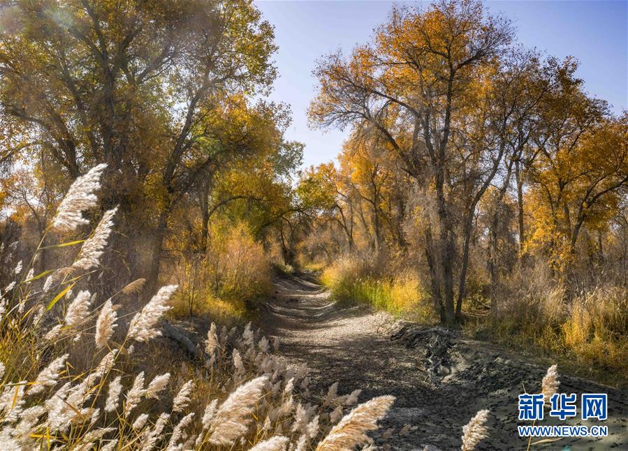 新疆輪臺(tái)縣胡楊林深處的一條小路(10月25日攝)。 10月中下旬,靜靜的塔里木河中下游一片金黃。胡楊深處,條條小路蜿蜒綿長(zhǎng)通向遠(yuǎn)方,引人入勝。 塔里木河是中國(guó)最長(zhǎng)的內(nèi)陸河,這一區(qū)域原始胡楊林分布較為集中。隨著塔里木河連續(xù)19次向下游生態(tài)輸水,為胡楊林“解渴”,塔河兩岸生態(tài)得到明顯改善,沙地面積逐年減少。 新華社記者趙戈攝