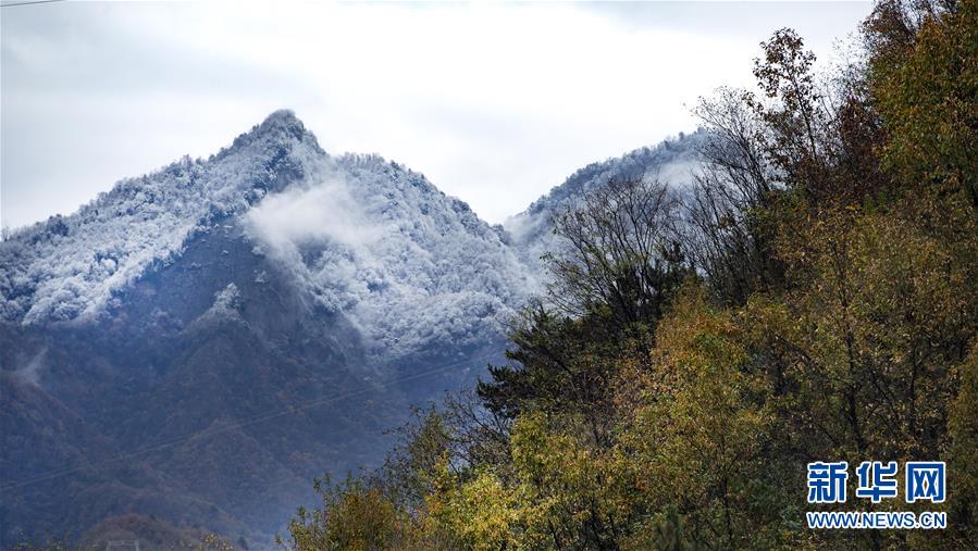 11月5日在西(安)成(都)高鐵線佛坪站站臺(tái)上拍攝的秦嶺景色。 新華社記者陶明攝