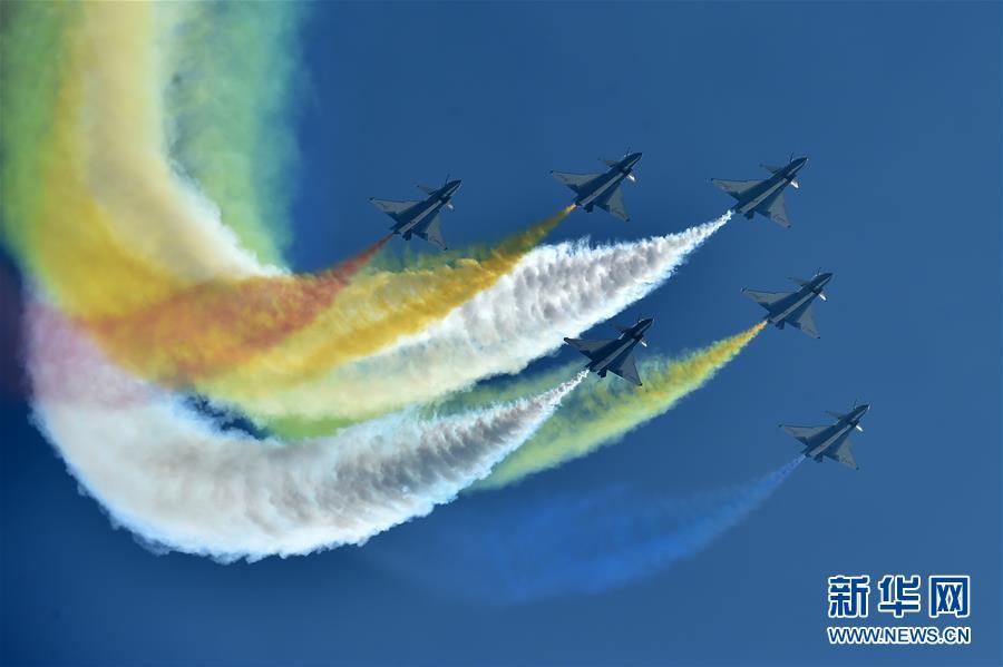11月6日,中國空軍八一飛行表演隊在航展現(xiàn)場進行飛行表演。當(dāng)日,第十二屆中國國際航空航天博覽會在珠海開幕。 新華社記者梁旭攝
