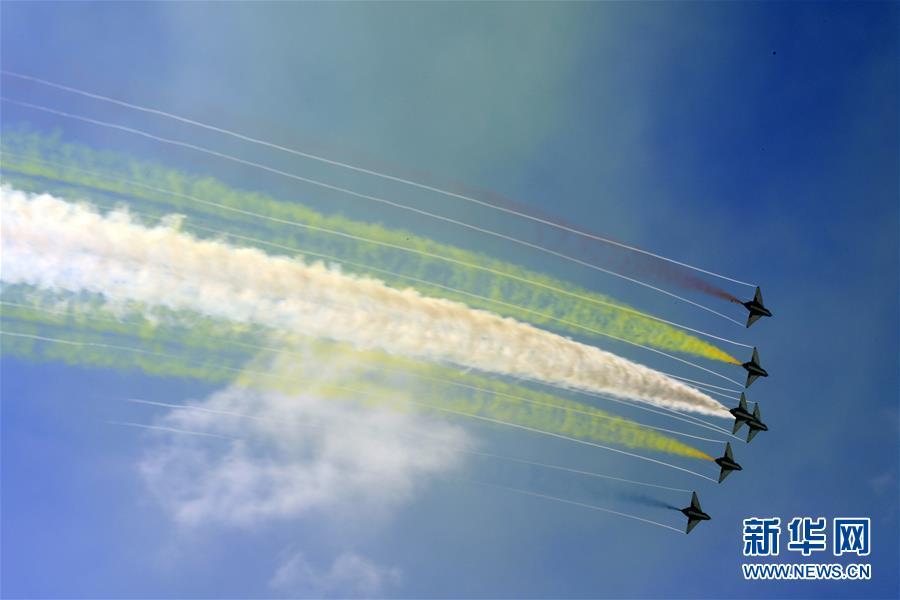 11月6日,中國空軍八一飛行表演隊(duì)在航展現(xiàn)場進(jìn)行飛行表演。當(dāng)日,第十二屆中國國際航空航天博覽會(huì)在珠海開幕。 新華社記者劉芳攝