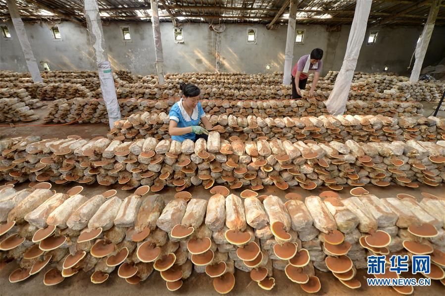 8月22日,河北省沙河市蟬房鄉(xiāng)水磨頭村農(nóng)民在大棚內(nèi)管理種植的靈芝。 新華社記者 牟宇 攝
