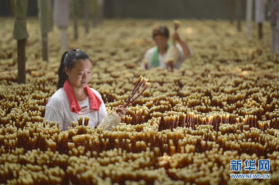 8月22日,河北省沙河市蟬房鄉(xiāng)水磨頭村農(nóng)民在管理種植的靈芝。 近年來,河北省沙河市蟬房鄉(xiāng)水磨頭村采取“合作社+基地+農(nóng)戶”的經(jīng)營(yíng)模式,大力發(fā)展特色靈芝種植,開辟出農(nóng)民創(chuàng)收新路徑。目前,水磨頭村已種植各類靈芝8萬(wàn)多株,產(chǎn)品銷往北京、天津、山東等地,帶動(dòng)100余名農(nóng)民人均年增收超5000元。 新華社記者 牟宇 攝