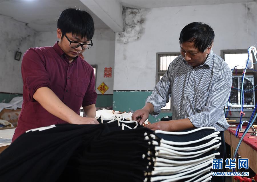 在蘇州市吳江區(qū)七都鎮(zhèn)開弦弓村,“90后”村民姚凌超(左)和父親姚玉坤在自家針織衫加工作坊里整理產(chǎn)品(10月23日攝)。近年來,開弦弓村形成了化纖紡織、針織衫編織和水產(chǎn)養(yǎng)殖三大產(chǎn)業(yè),2017年村集體收入268萬元,農(nóng)民人均可支配收入3萬多元。  新華社記者 季春鵬 攝