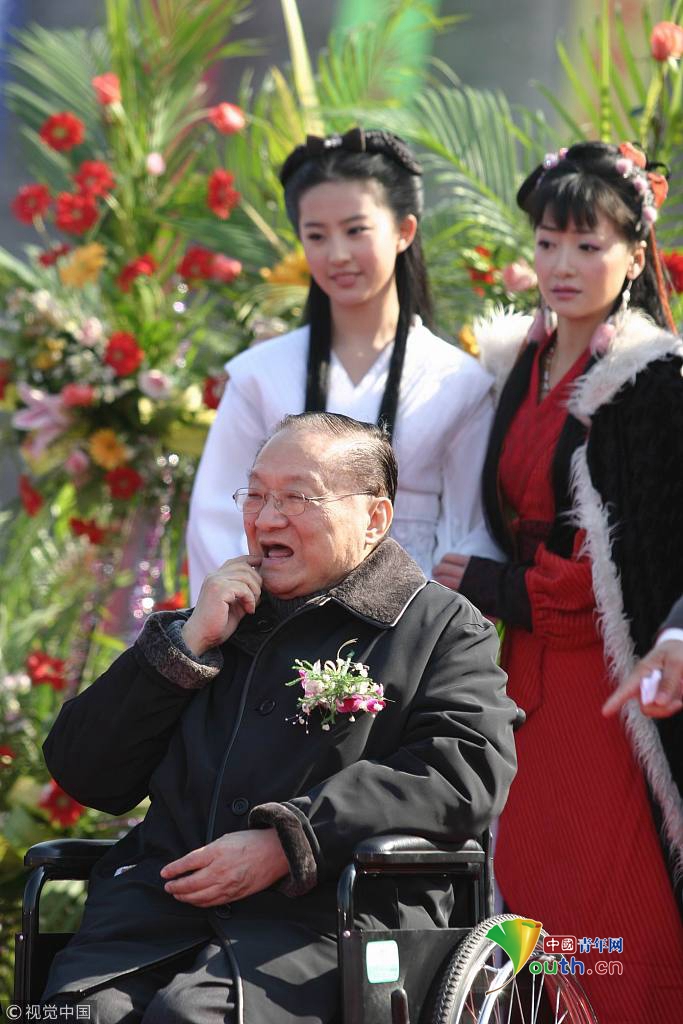2005年1月10日,《神雕俠侶》劇組正式在第三個拍攝地—寧波象山開機(jī)。金庸與劉亦菲在一起。