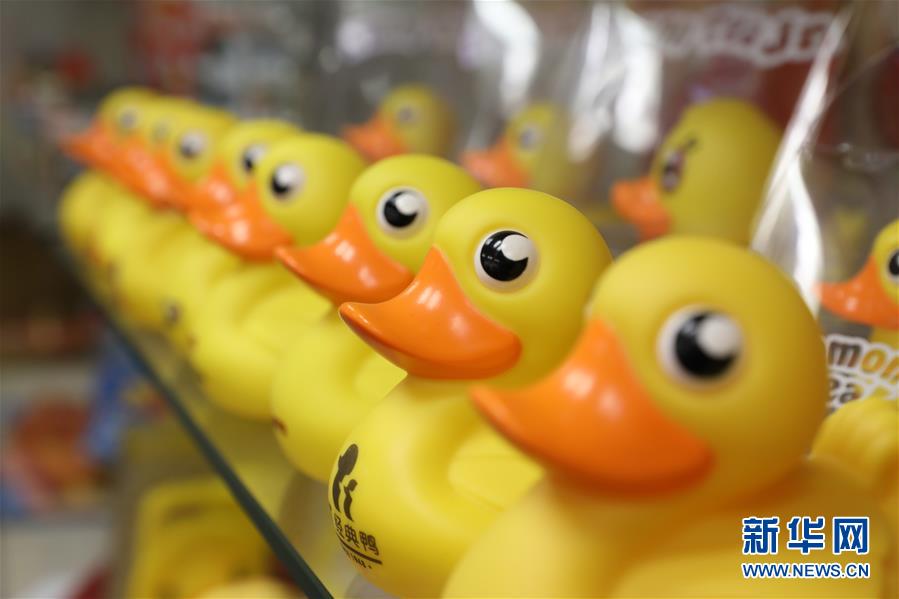 林亮在展示當年生產小黃鴨的模具(10月26日攝)。