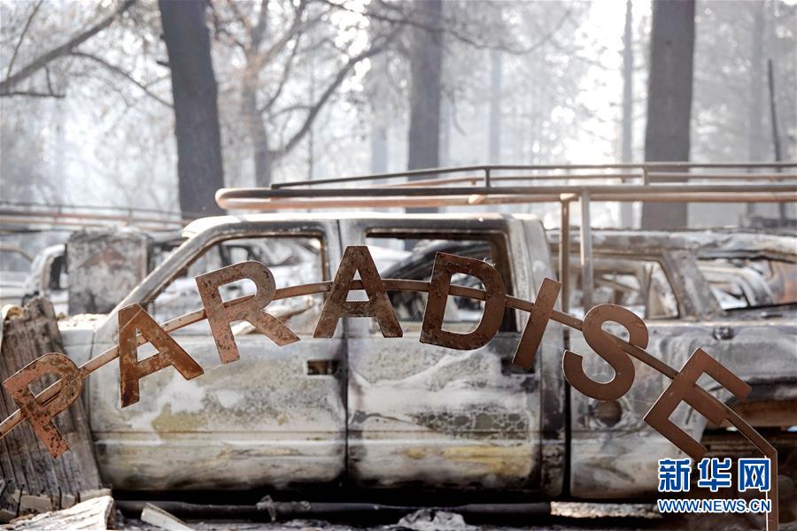這是11月19日在美國(guó)加利福尼亞州比尤特縣天堂鎮(zhèn)拍攝的車輛殘骸和房屋廢墟。新華社記者吳曉凌攝