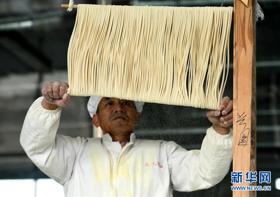 河北石家莊的藁城宮面歷史悠久,因曾進(jìn)貢清朝皇宮而得名。宮面采用手工制作,整個(gè)生產(chǎn)過(guò)程包括和面、開(kāi)條、盤(pán)條、上軸、分面等十幾道工序,以“面細(xì)能穿針,空心有韌性”為特色,食用方便,營(yíng)養(yǎng)豐富。藁城宮面制作技藝于2013年入選河北省級(jí)非物質(zhì)文化遺產(chǎn)名錄。