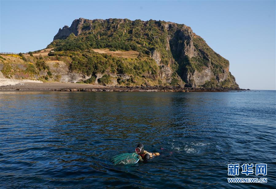 11月23日,一名海女在韓國濟(jì)州島的一處海岸附近作業(yè)。新華社記者王婧嬙攝