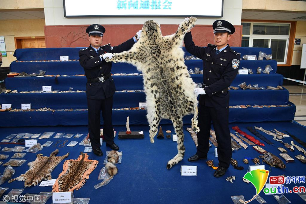 11月23日,現(xiàn)場展示警方查獲的野生動物制品。當日,昆明市森林公安局向媒體通報,破獲一系列特大非法收購出售珍貴瀕危野生動物及其制品案件。