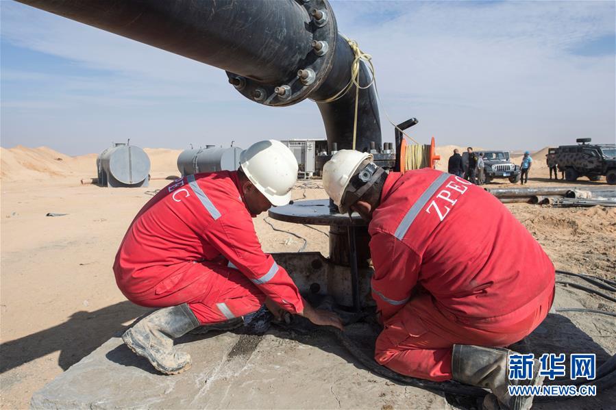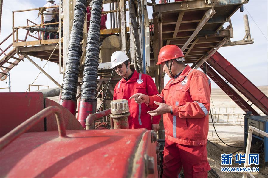 11月20日,在埃及明亞省,中國中曼石油公司的工人在鉆井現(xiàn)場作業(yè)。 2017年,中國中曼石油公司與阿聯(lián)酋海灣集團簽訂合同,為該集團在埃及沙漠中的大型農業(yè)項目鉆探300口水井。根據合同,中曼石油將先期完成30口井的試鉆探,剩余水井將以每月7口的速度交付。目前有超過200名工人在鉆井現(xiàn)場作業(yè),大部分是埃及本地人。 新華社記者李碧念攝