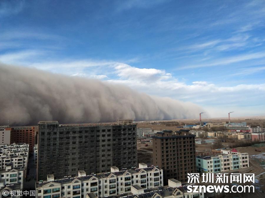 2018年11月25日,甘肅張掖,當(dāng)?shù)赝辉馍硥m暴襲擊。
