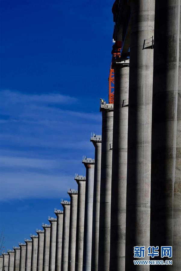 11月26日,施工人員在川藏鐵路拉林段貢嘎雅魯藏布江特大橋上鋪軌。  新華社記者 普布扎西 攝
