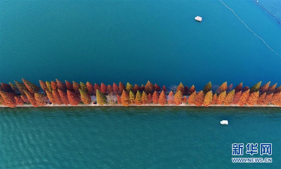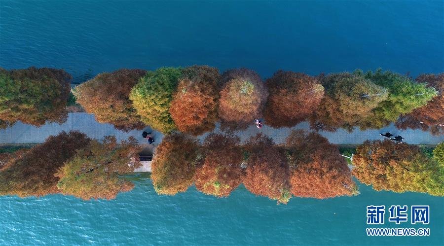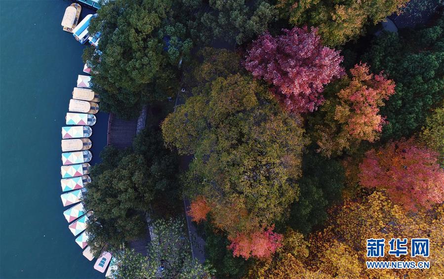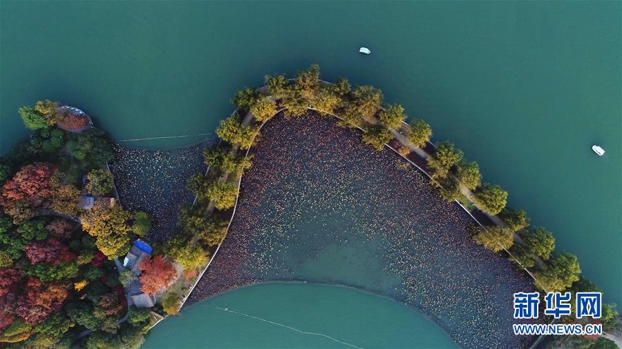初冬時節(jié),在湖南長沙的湖南烈士公園年嘉湖畔,色彩斑斕的樹葉與一湖碧水相映成趣,構(gòu)成一幅美麗的畫卷。 新華社記者 李尕攝