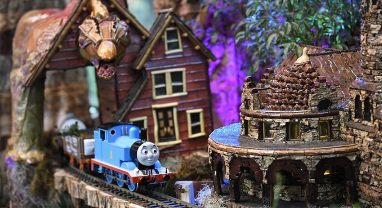 11月28日,游客在昌黎縣劉臺莊鎮(zhèn)白棗林村的玉米秸稈迷宮內(nèi)游玩(無人機拍攝)。