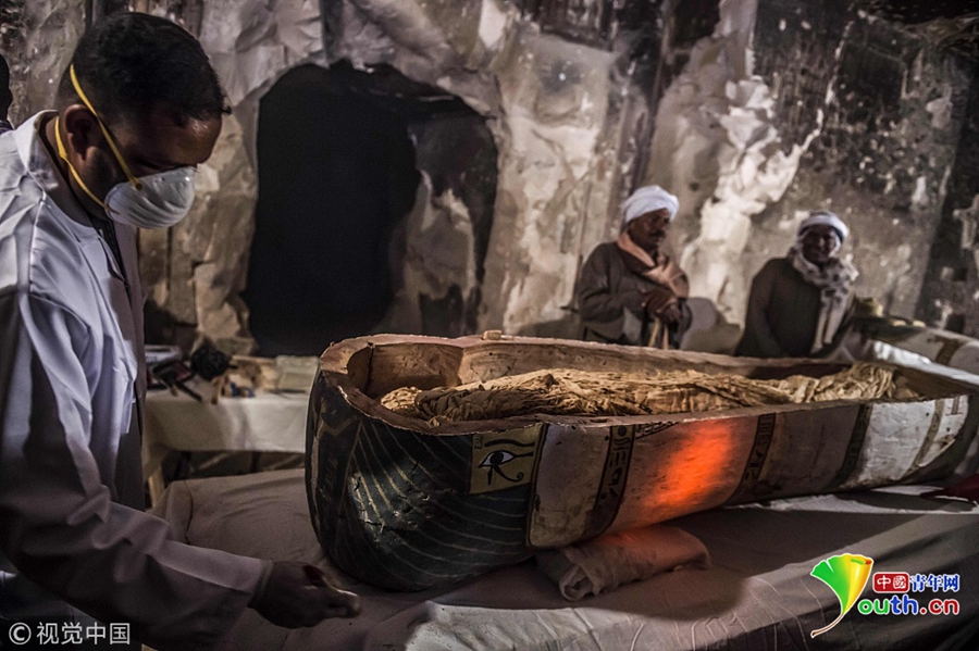 埃及盧克索挖出新墓穴 考古學(xué)家現(xiàn)場(chǎng)“開(kāi)棺見(jiàn)尸”