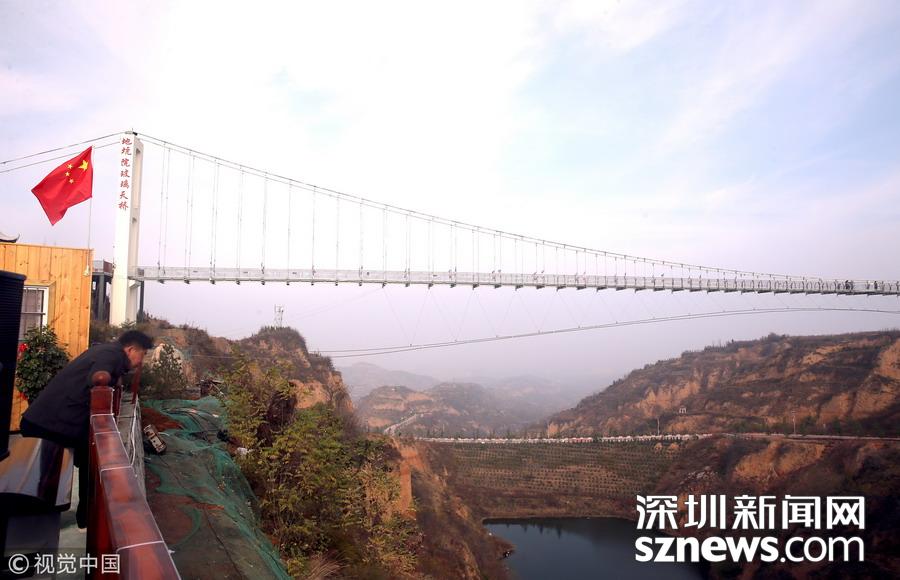 深圳新聞網(wǎng)訊 河南三門峽,位于陜州地坑院景區(qū)玻璃天橋。該項(xiàng)目橋梁總投資2600萬(wàn)元,全長(zhǎng)368米,寬3米,高108米,是目前河南省內(nèi)最長(zhǎng)的玻璃天橋,還將陸續(xù)對(duì)外開放夜景效果、聲光效果以及更多的體驗(yàn)效果,逐步打造成整個(gè)豫西地區(qū)乃至全省的旅游打卡新地標(biāo)。