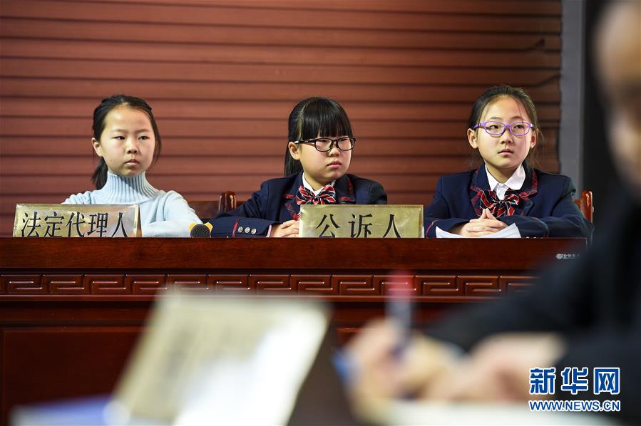 12月3日,銀川市實驗小學(xué)的學(xué)生在憲法日主題活動中體驗?zāi)M法庭。國家憲法日到來之際,各地學(xué)校紛紛舉辦主題宣講活動,對學(xué)生開展法治教育,幫助孩子們了解憲法知識。新華社發(fā)(馮開華 攝)