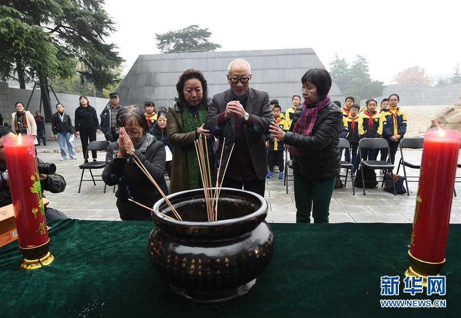 12月3日,南京大屠殺幸存者石秀英焚香祭奠被侵華日軍殺害的親人。 當日,在第五個南京大屠殺死難者國家公祭日到來之際,南京大屠殺死難者遺屬家祭活動在侵華日軍南京大屠殺遇難同胞紀念館正式啟動。首批前來開展家祭活動的南京大屠殺幸存者余昌祥、石秀英老人分別率家屬在紀念館內(nèi)的死難者名單墻前獻花、敬香、跪拜,并誦讀家信,表達對親人的哀思。 新華社記者 孫參 攝