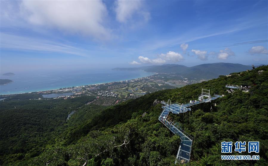 8月31日,游客在玻璃觀景平臺(tái)上參觀游覽。近日,位于海南省三亞市亞龍灣熱帶天堂森林公園的大佛石全海景玻璃棧道開始正式營(yíng)業(yè)。凌空而建的玻璃棧道全長(zhǎng)400米,游客可將亞龍灣的美景盡收眼底。新華社記者郭程攝