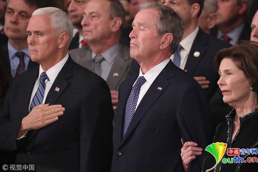布什家族成員小布什、副總統(tǒng)彭斯等多位政界人士出席儀式。