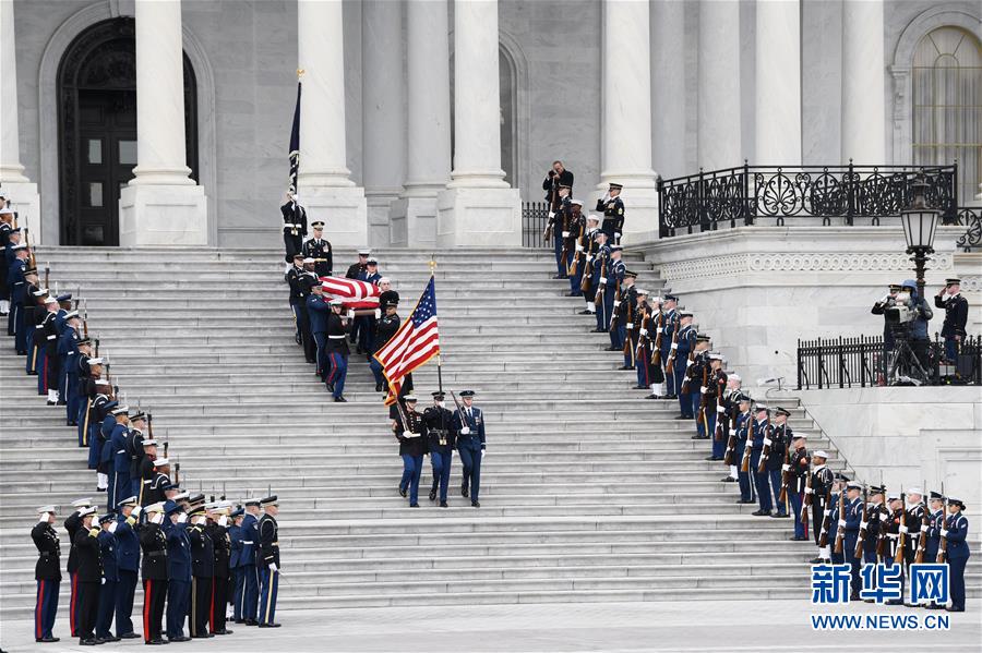 12月5日,在美國首都華盛頓,美國前總統喬治·赫伯特·沃克·布什的靈柩離開國會大廈。