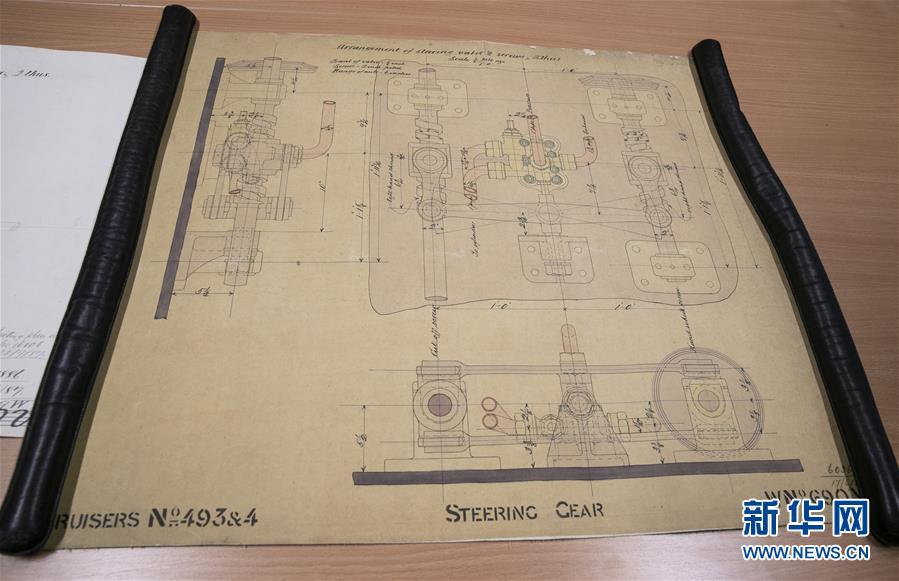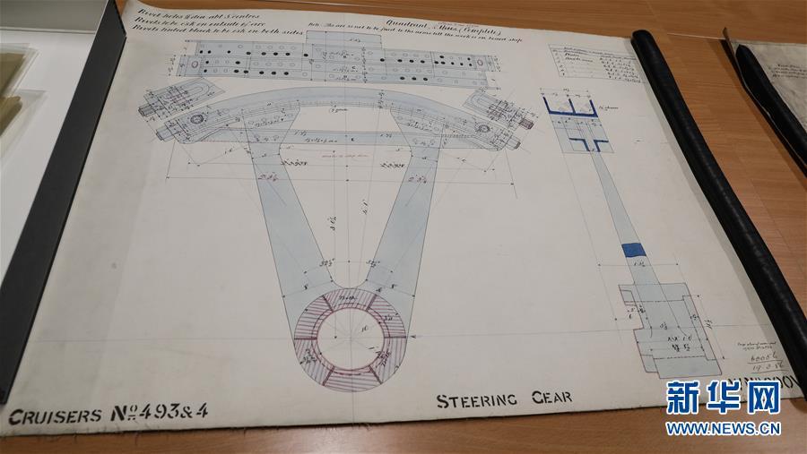 這是11月2日,在英國紐卡斯?fàn)柵臄z的橫跨在泰恩河上的紅白兩色的鋼鐵旋轉(zhuǎn)橋泰恩橋。當(dāng)年,致遠(yuǎn)艦就是從這里駛向大海,開啟東方征程。 新華社記者日前在紐卡斯?fàn)柼┒鳌枡n案館查找北洋海軍史料時(shí)發(fā)現(xiàn)一套七張、檔案名為“中國巡洋艦舵機(jī)設(shè)計(jì)圖”的原始圖紙。塵封百年,甲午海戰(zhàn)中抗擊日艦后沉沒的清北洋海軍致遠(yuǎn)艦部分原廠設(shè)計(jì)圖紙?jiān)谄浣ㄔ斓亍~卡斯?fàn)柺械囊患覚n案館首次被發(fā)現(xiàn),為打撈那段悲壯的歷史提供了重要參考。 新華社記者 韓巖 攝