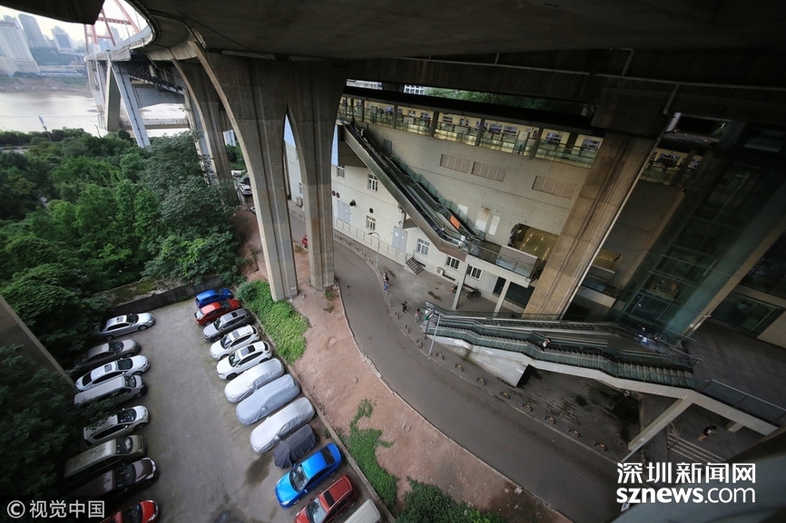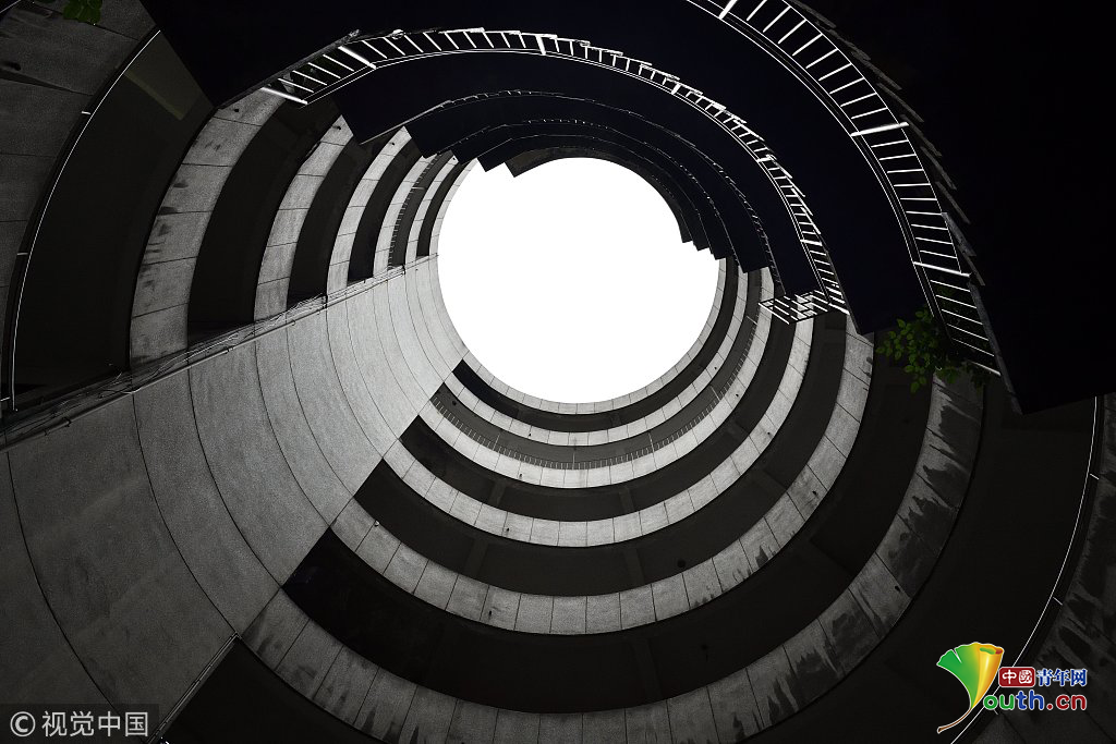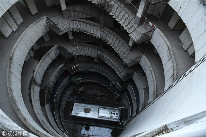 重慶洋人街景區(qū)內的穿樓觀光索道吸引不少游客體驗。據(jù)悉,跨度長1000米的觀光索道將隨著洋人街的拆遷而搬離。中新社記者陳超 攝 2017年9月27日,重慶,南岸區(qū)某小區(qū)的“螺旋”停車場,從公路到車庫要下5層樓,司機需要轉無數(shù)個360度圈。圖片來源:視覺中國