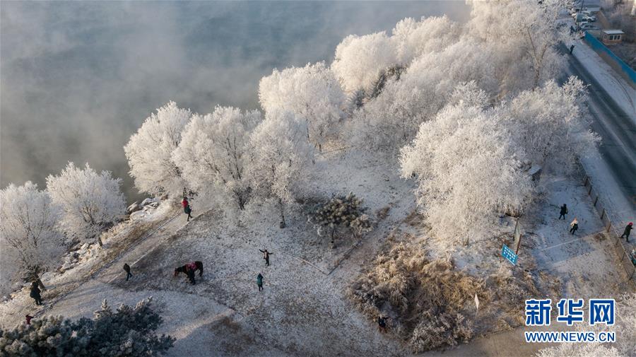 當日,吉林省吉林市出現(xiàn)霧凇景觀,松花江畔的樹木仿佛披上了銀色盛裝。