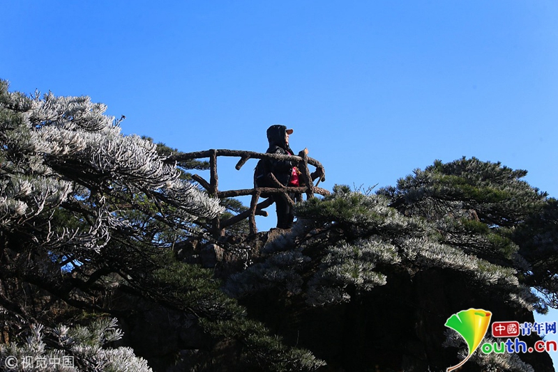 4月15日,安徽黃山出現(xiàn)了四月陽春罕見的霧凇奇觀。圖片作者:施廣德/視覺中國