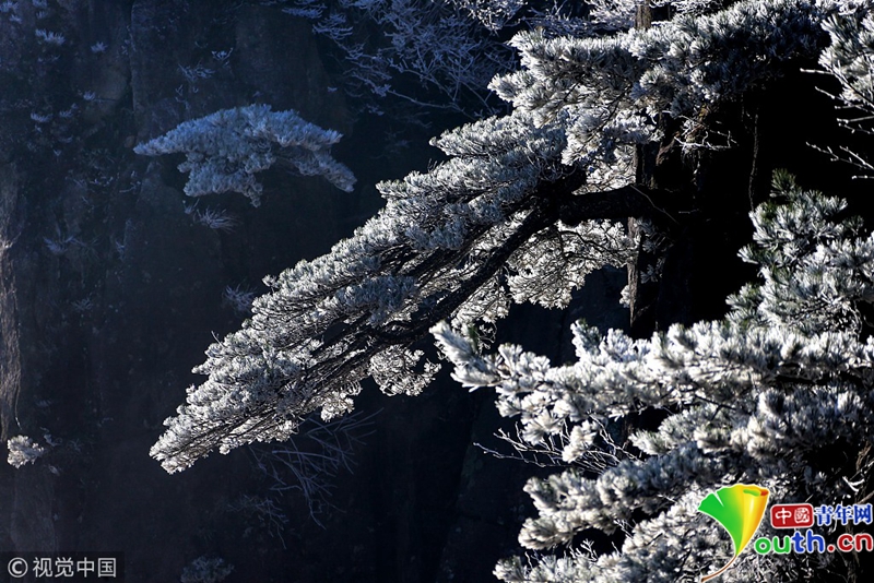 安徽黃山出現(xiàn)了四月陽春罕見的霧凇奇觀。