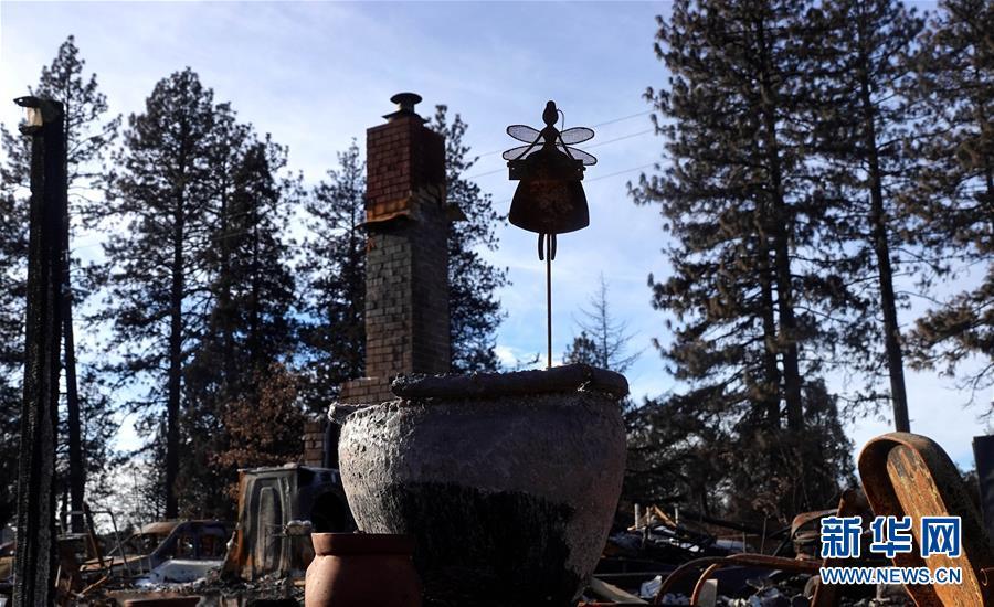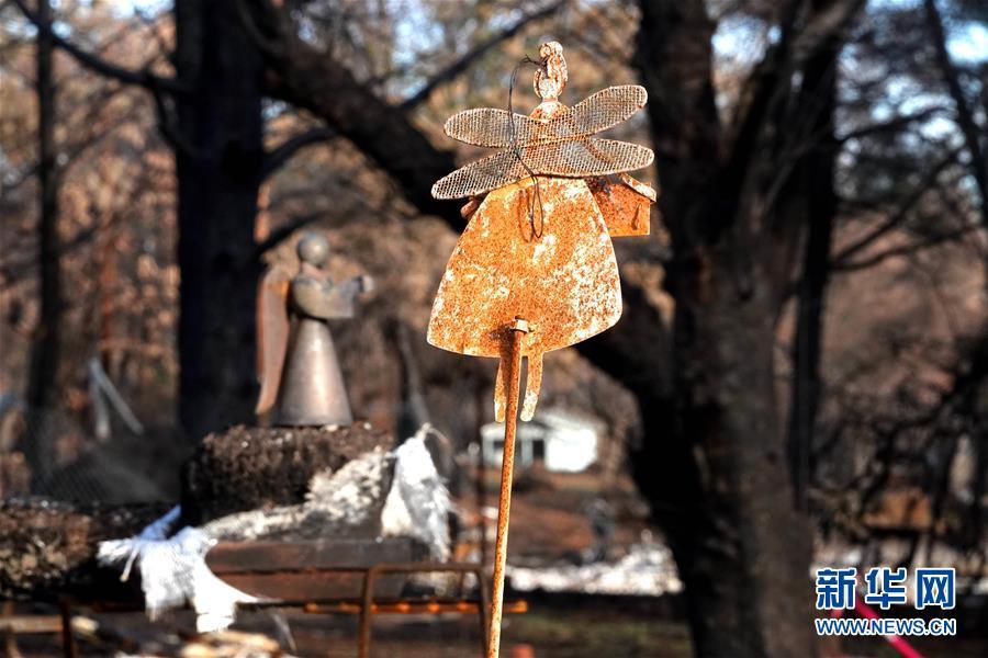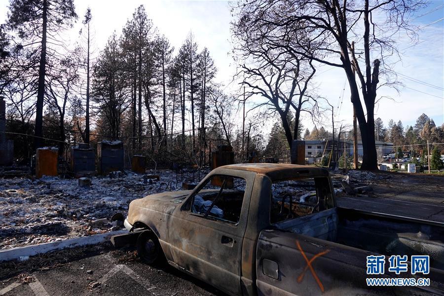 這是12月7日在美國(guó)加利福尼亞州比尤特縣天堂鎮(zhèn)拍攝的山火廢墟。