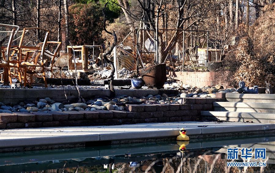 這是12月7日在美國(guó)加利福尼亞州比尤特縣天堂鎮(zhèn)拍攝的山火廢墟。 新華社記者吳曉凌攝
